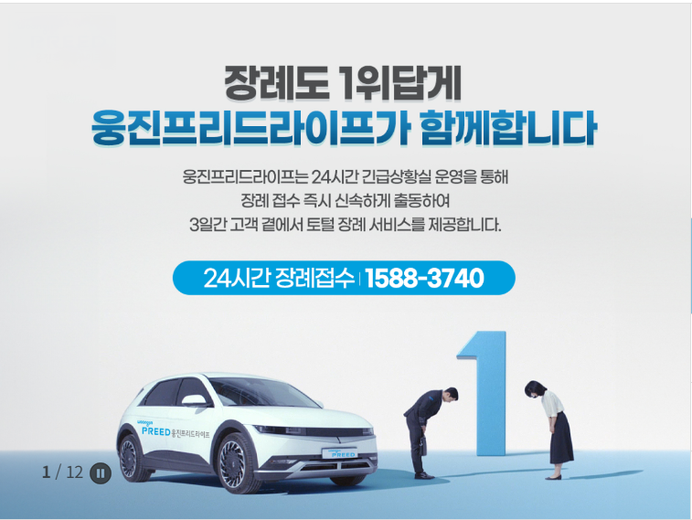 자산총액 1위, 선수금1위 대한민국 상조업계 1위 웅진프리드라이프! 대표전화·장례접수(24시간) : 1588-3740